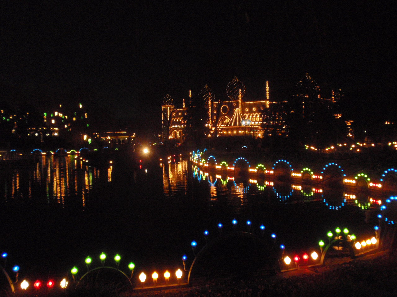 チボリ湖はすべてこの色の明かりで照らされている。