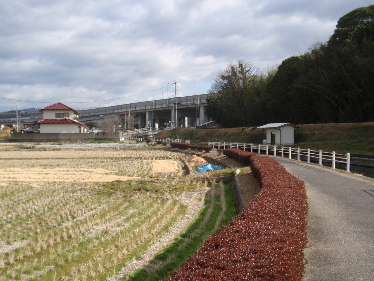 水路の道で高松農高を東西に歩いていった。