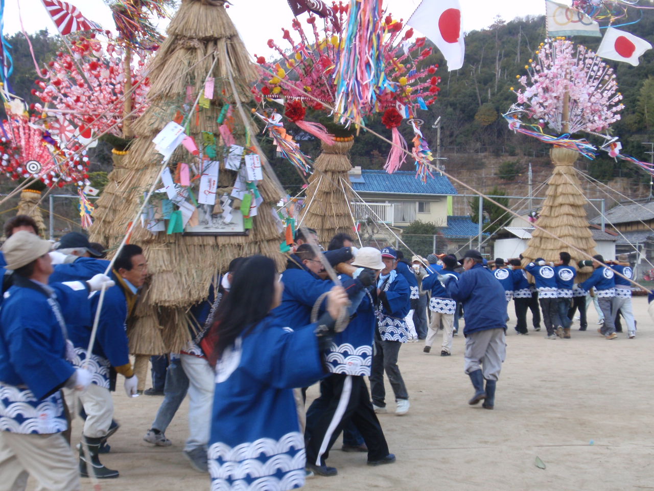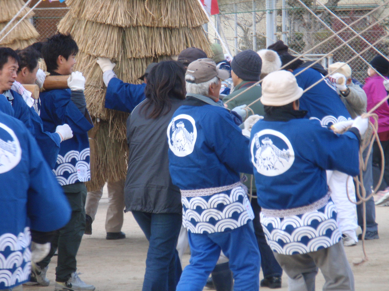 担ぐ人、綱を引く人が校庭を占領して回り、他のとんどと勢いを競うようになった。