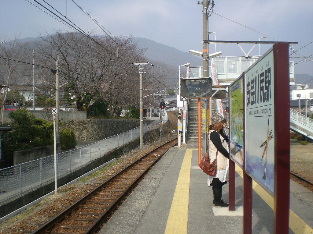 1時間にいっぽんの川尻駅。いっしゅん、えいちゃんはとまどった、どうなっているんだ。