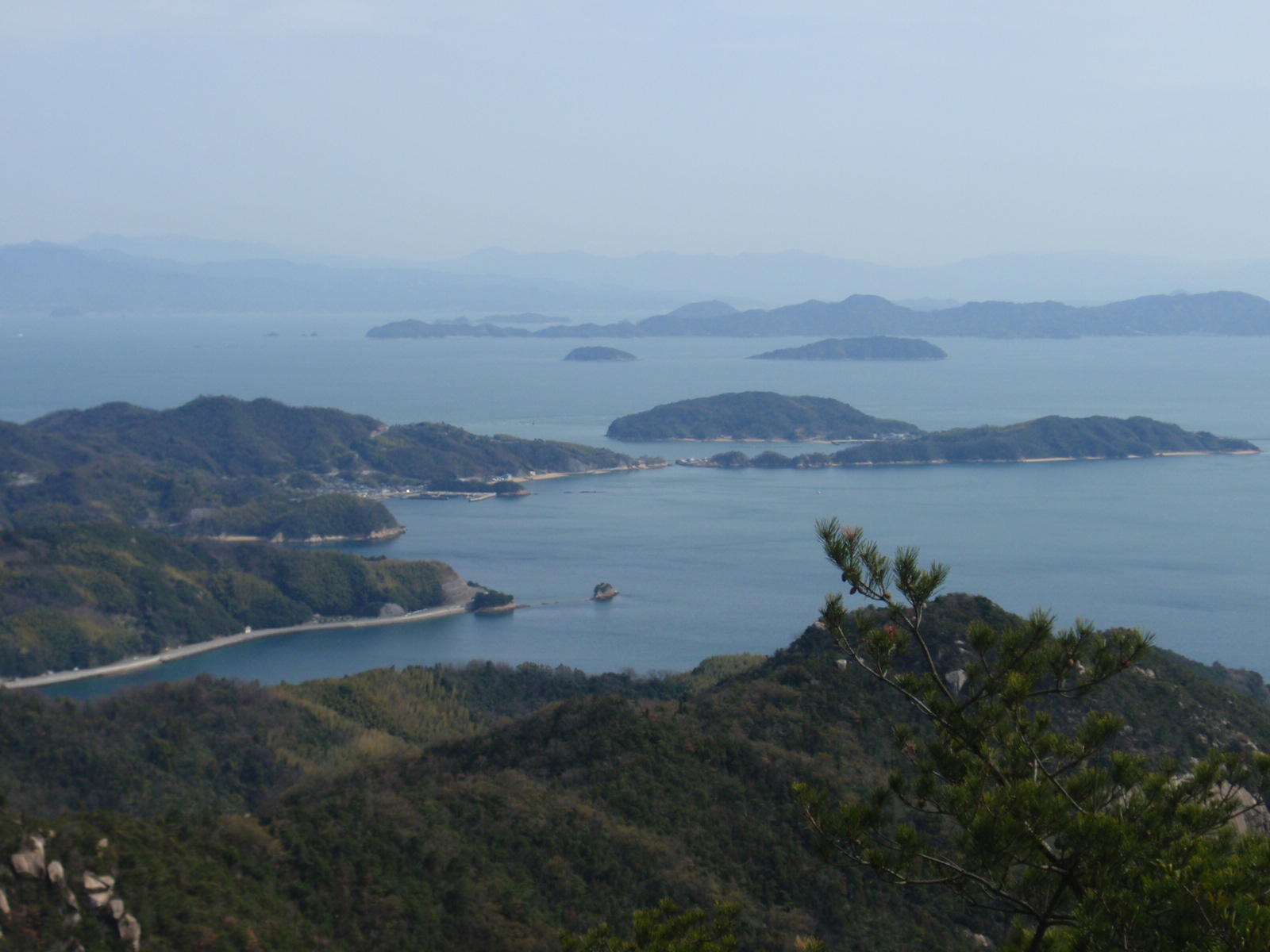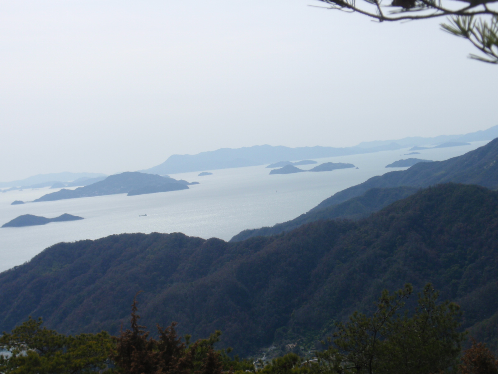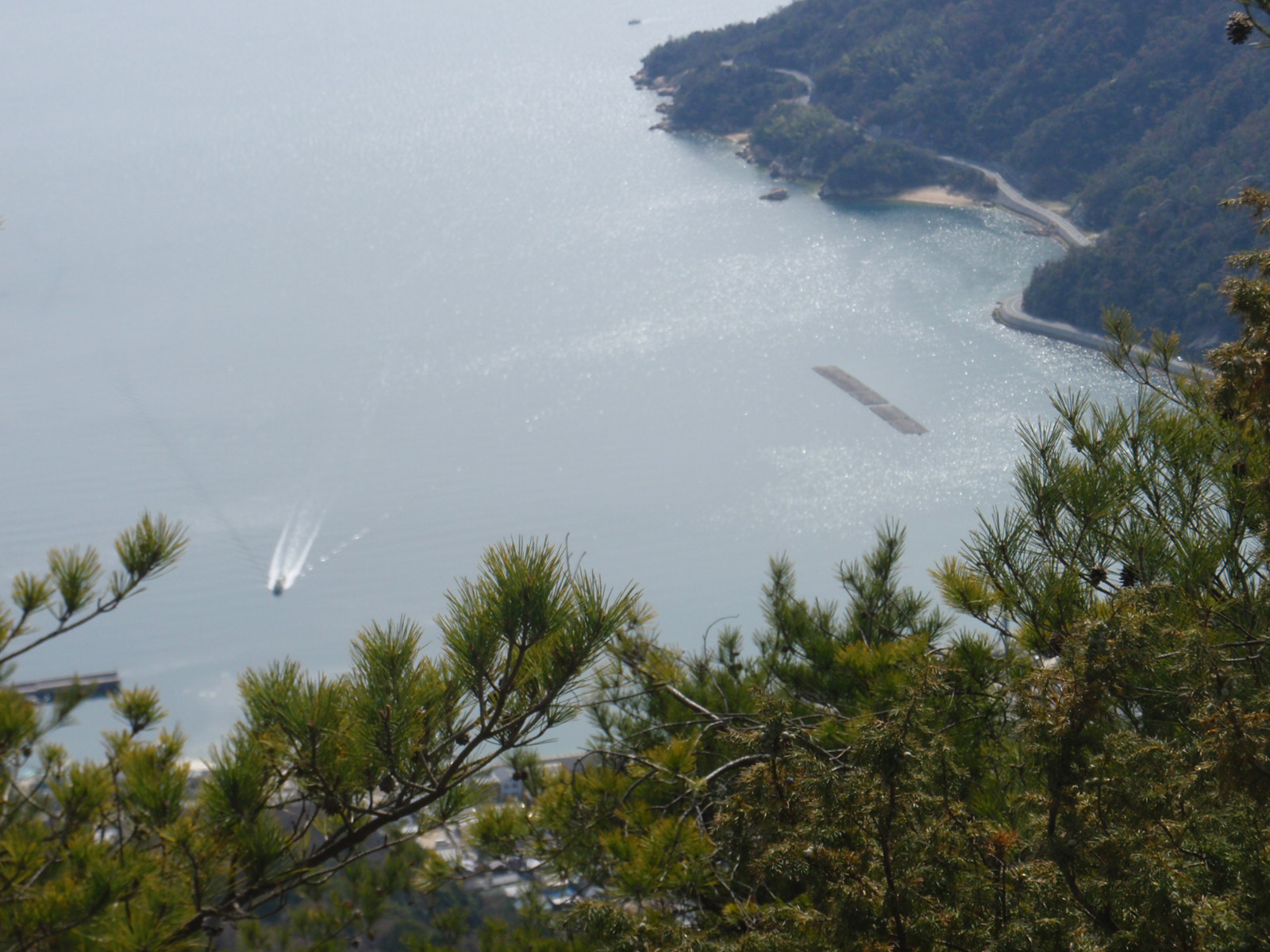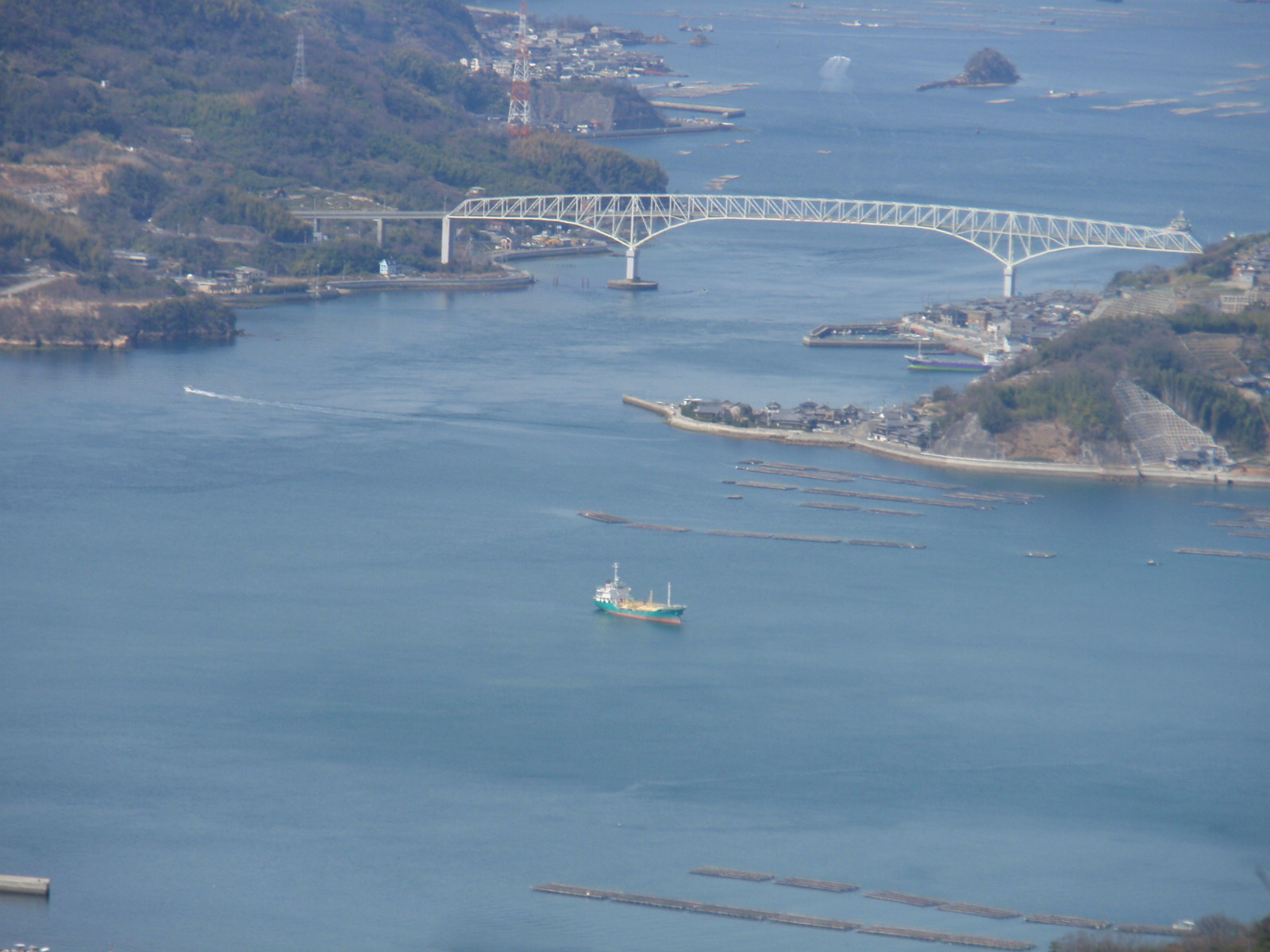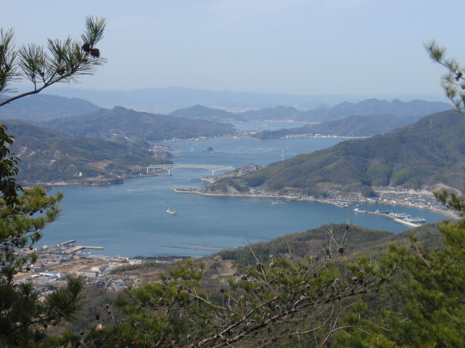右の小島のような半島、「鹿老渡」。あそこまでが倉橋島。細長い島は愛媛県温泉郡中島、今は松山市に合併されている。