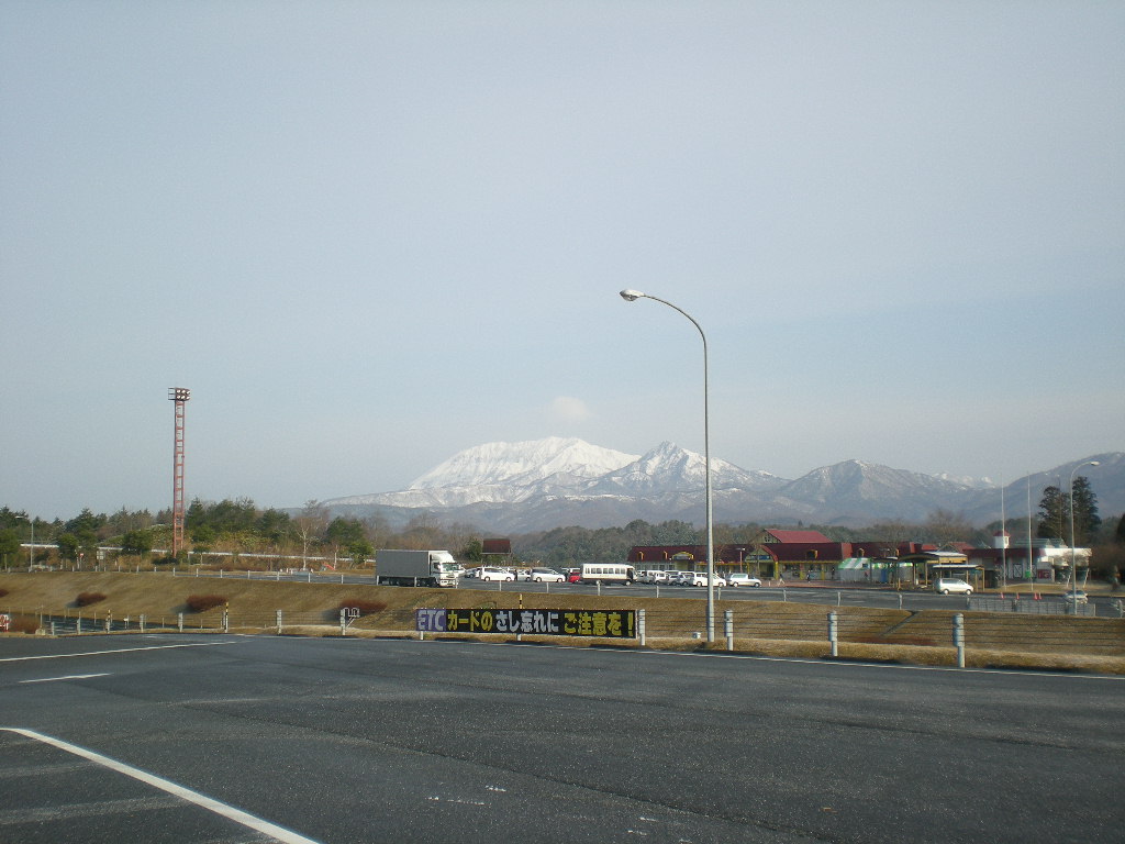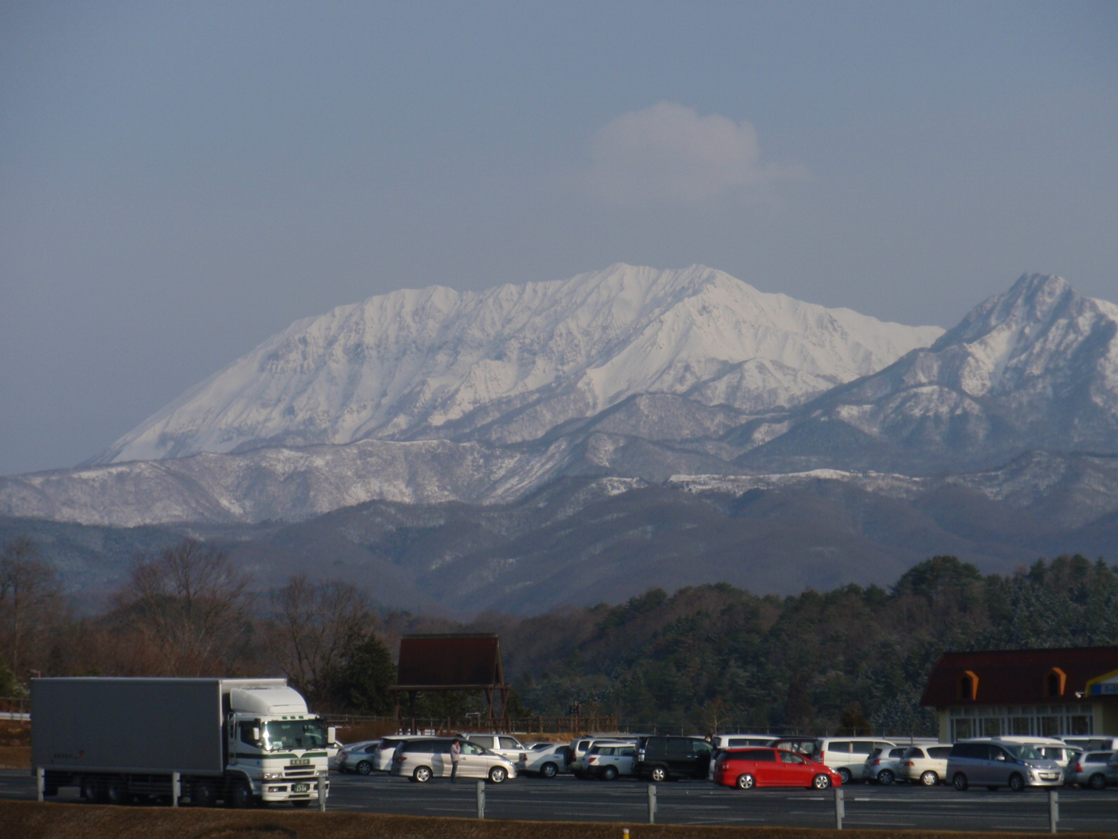 米子道からまっ白い大山南壁と三平山が見えた、ぼのすごくきれいに見えた。それで蒜山SAに駐車した。