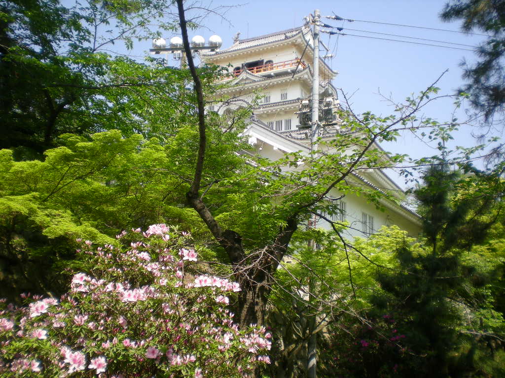 福山城天守閣とサツキと新緑。