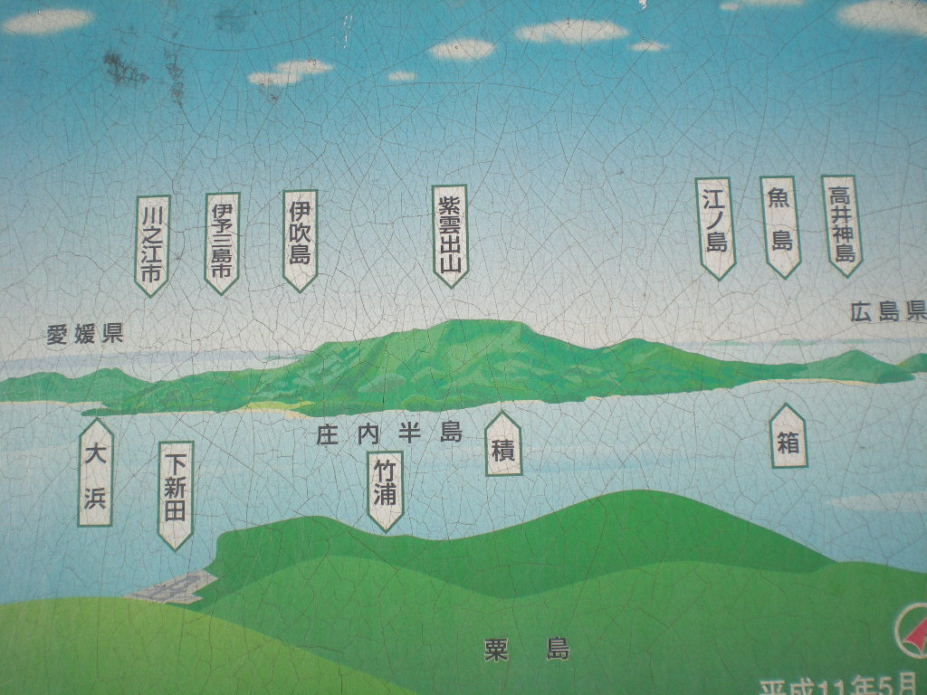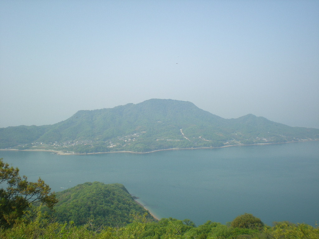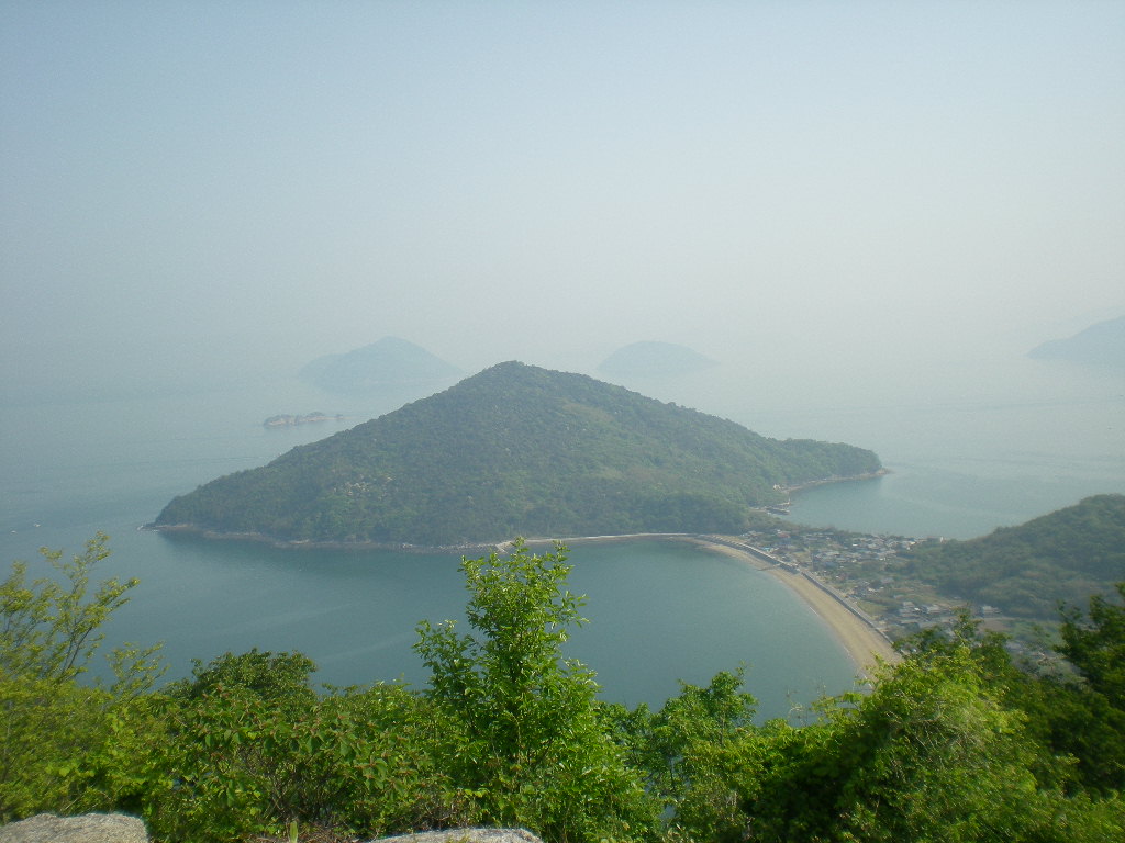 ↑の看板どおりの向きの展望。中央に紫雲出山。