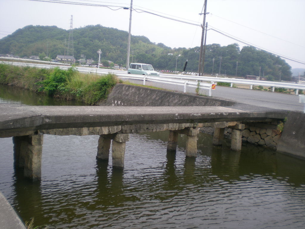吉田川に架かる橋、石橋。橋脚まで石の橋はけっこう珍しい。