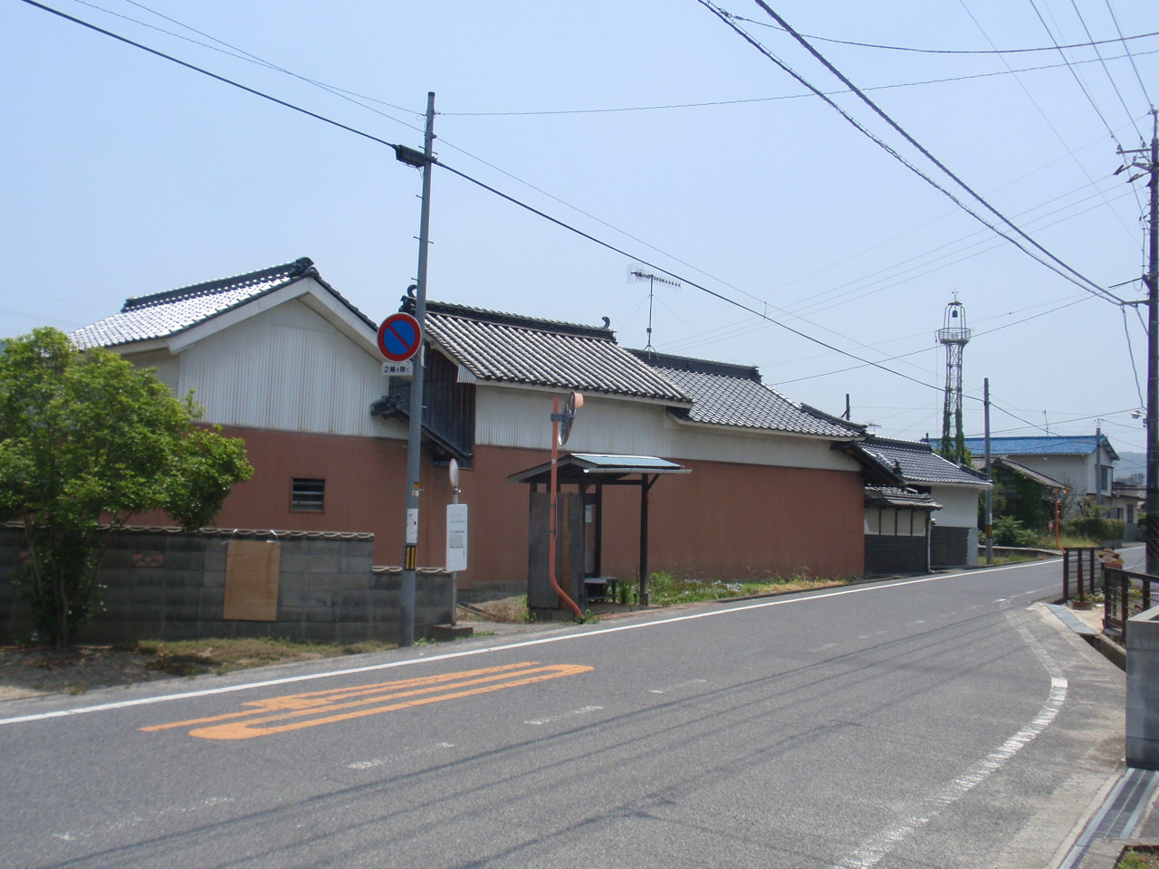 井笠バス「新賀郵便局前」。バスの時刻表を記録しといてまたここでバスの写真を写そう。