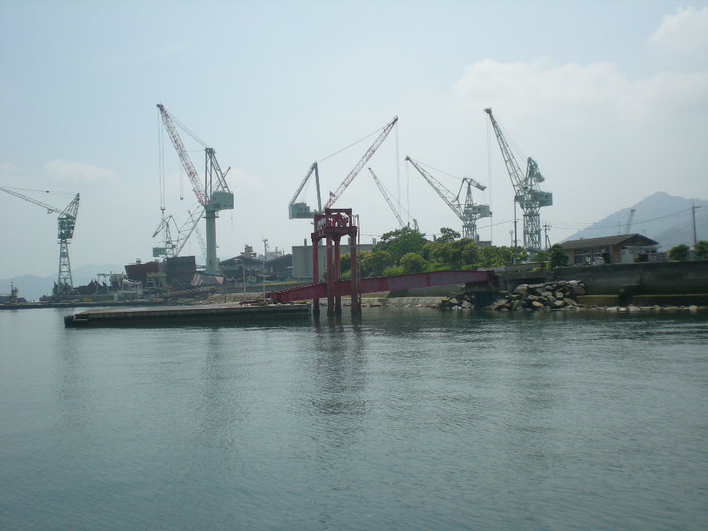 生口島の内海造船と沢港。今日のえいちゃんは生口島からの帰りは、この沢港からフェリーに乗る。