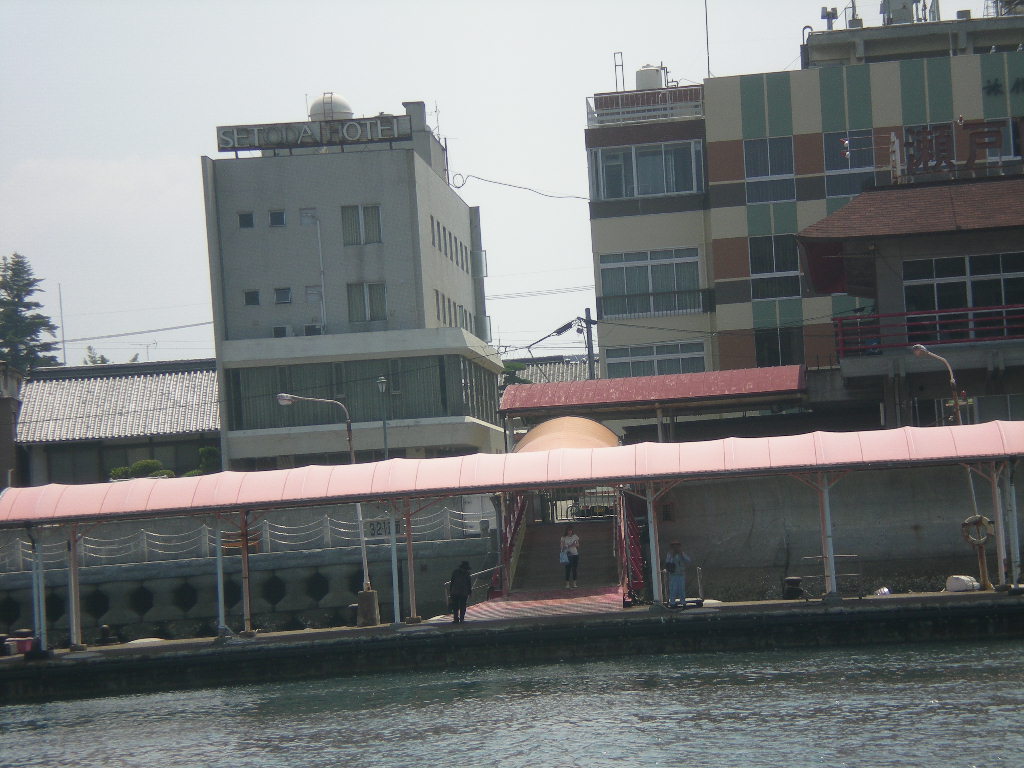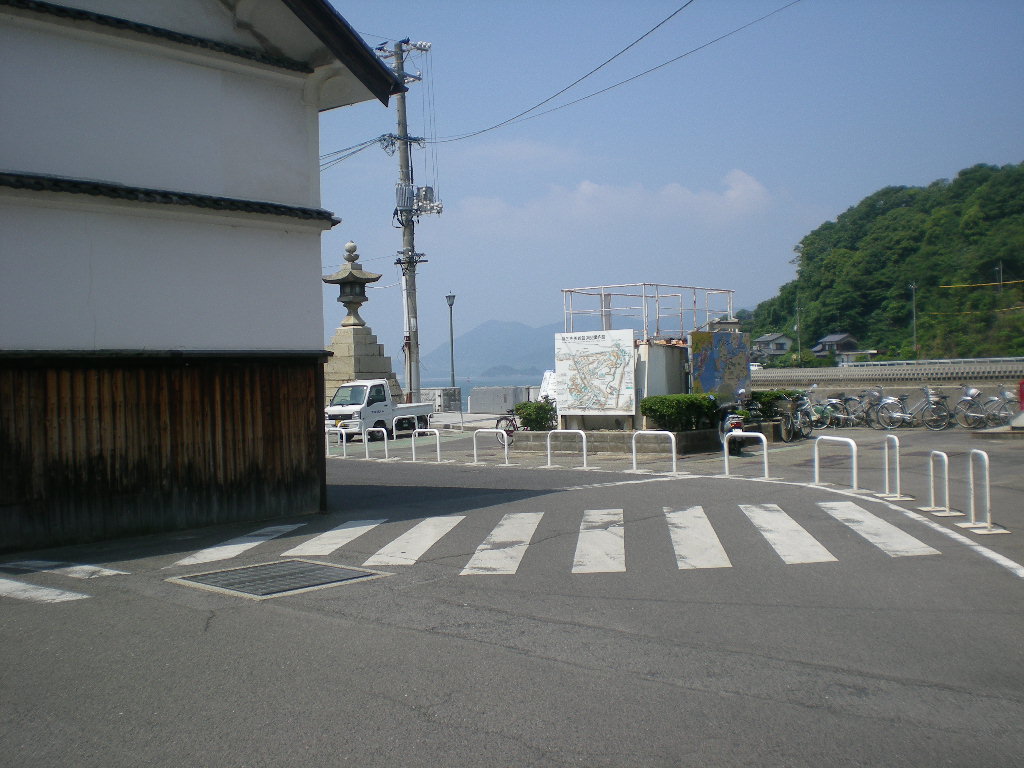 瀬戸田港のターミナルビルには↑、自動販売機が二台ぽつんと置いてあり。港には↓人影すらなかった。