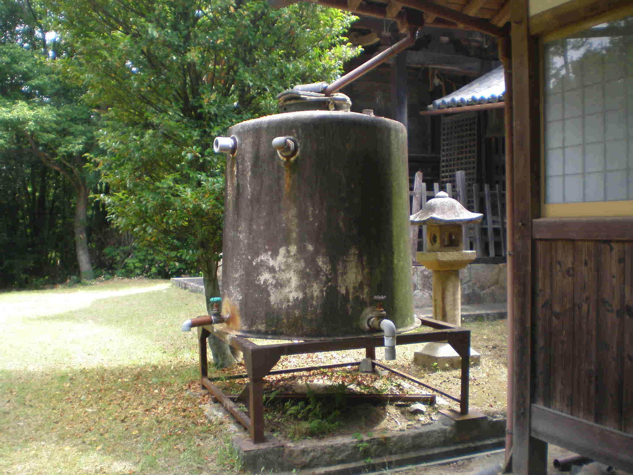 有田神社には屋根から雨水をタンクに貯蔵して水道にしていた。