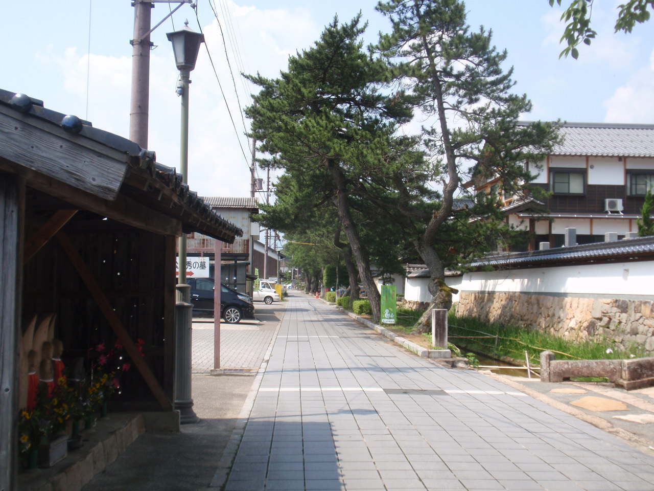 小川の山側(竹田城側)にお寺が並び、老松がつづき、川には鯉のほかにショウブが植えられている。