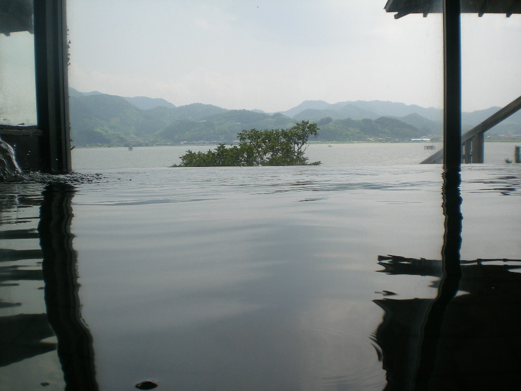 露天風呂の前は東郷湖。