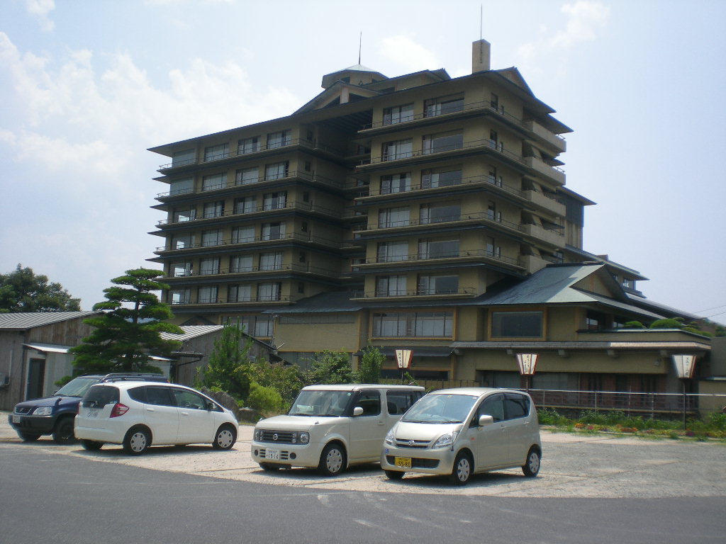 これは「望湖楼」、はわい温泉でいちばん巨大なホテル。