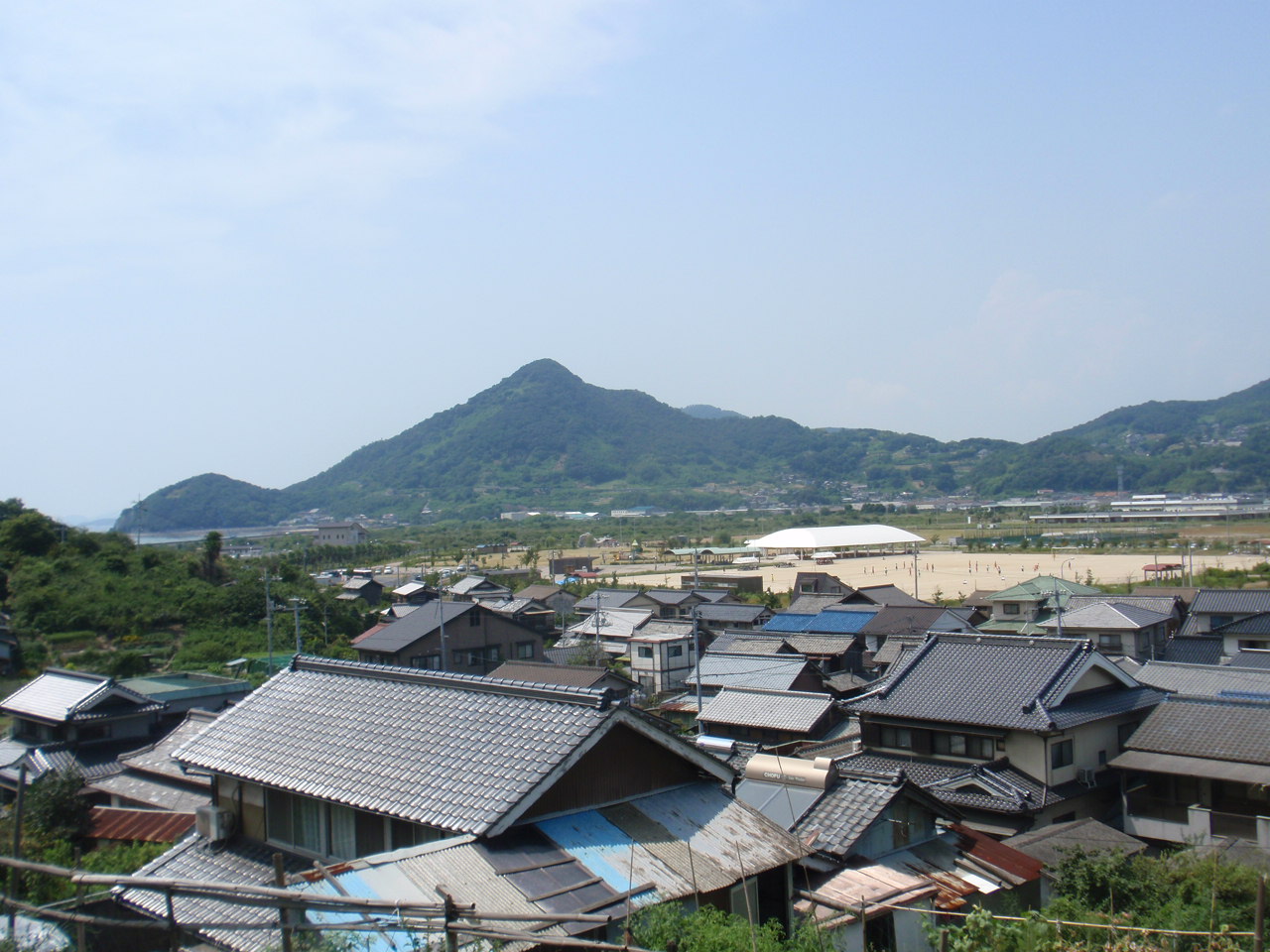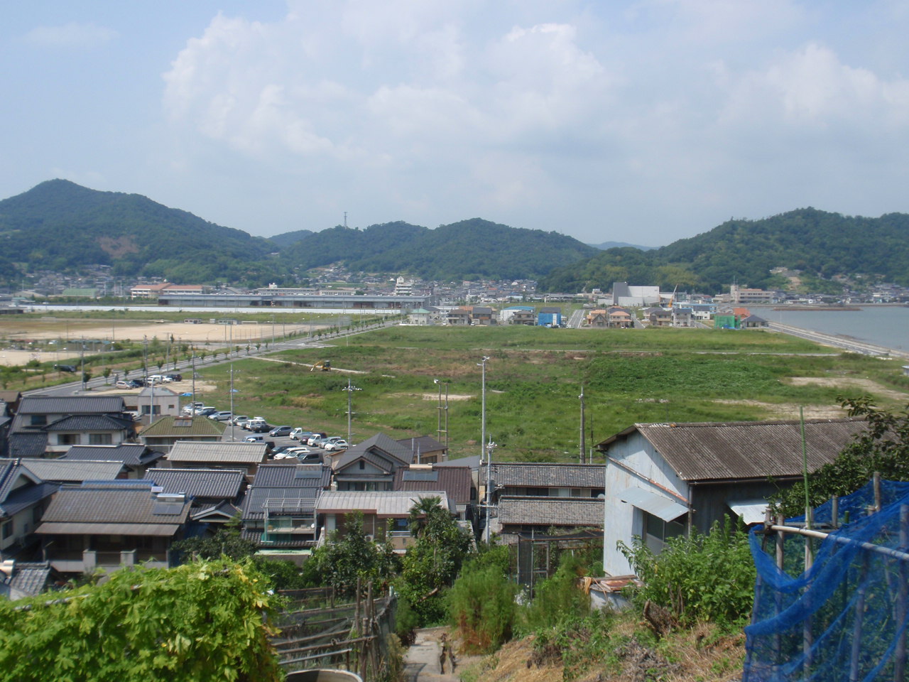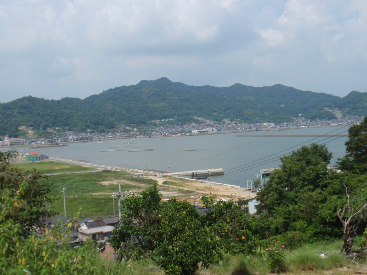 元寄島から本土を見る。昔の写真では干潮時に海を歩いて通学していたみたいだ。