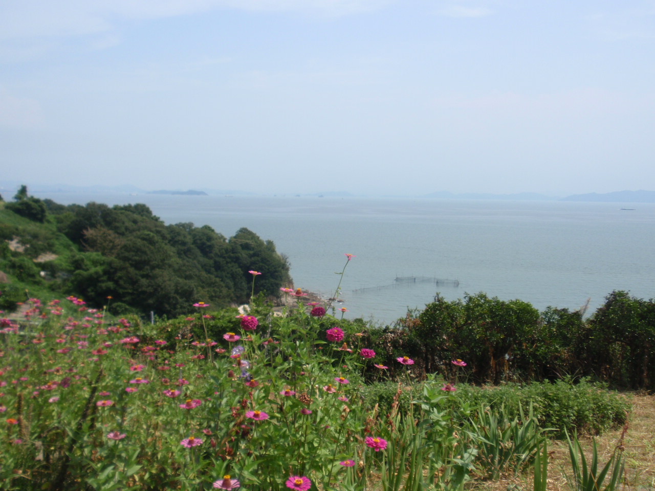 東を見れば瀬戸大橋。水島灘の向こうにj瀬戸大橋が見えている。