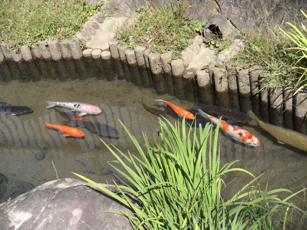 大洲の街を東方向へ行く。水路に泳ぐ錦鯉。