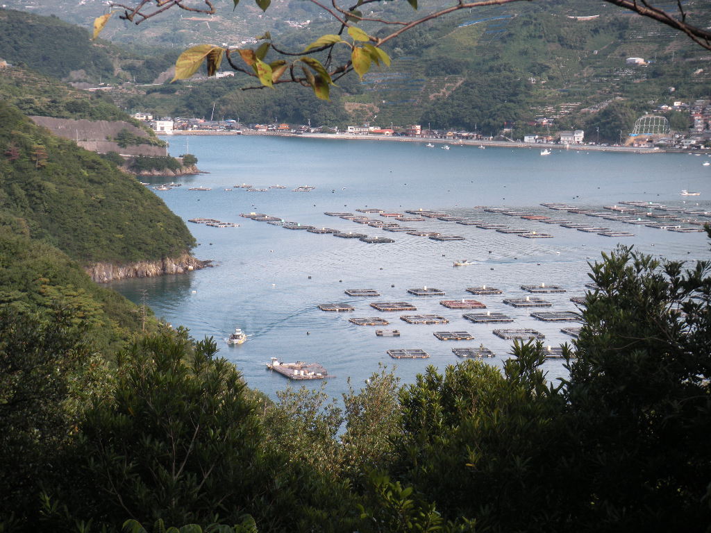 諏訪崎南側の養殖イカダ。