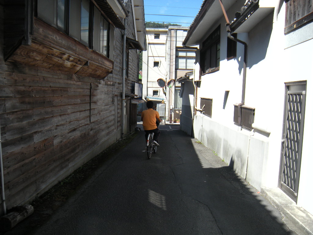 「西村酒造」の横道。突きあたり、正面には「愛媛銀行」。