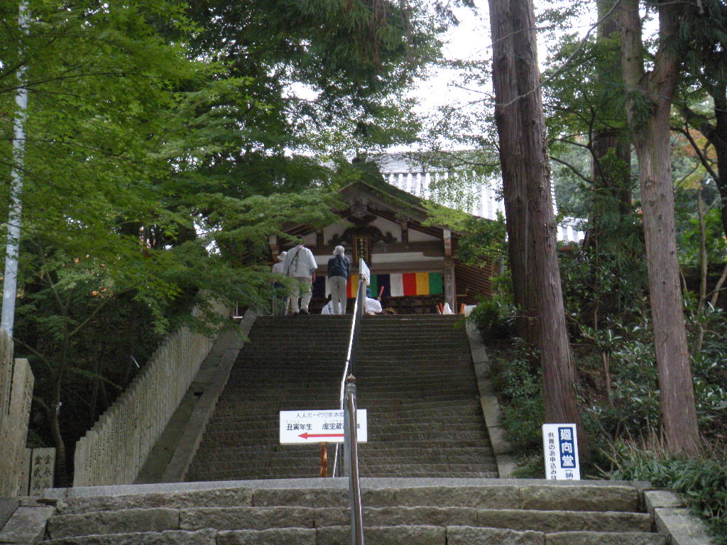 白峰寺からはお遍路さんが石段を下りている。えいちゃんは左に行く。
