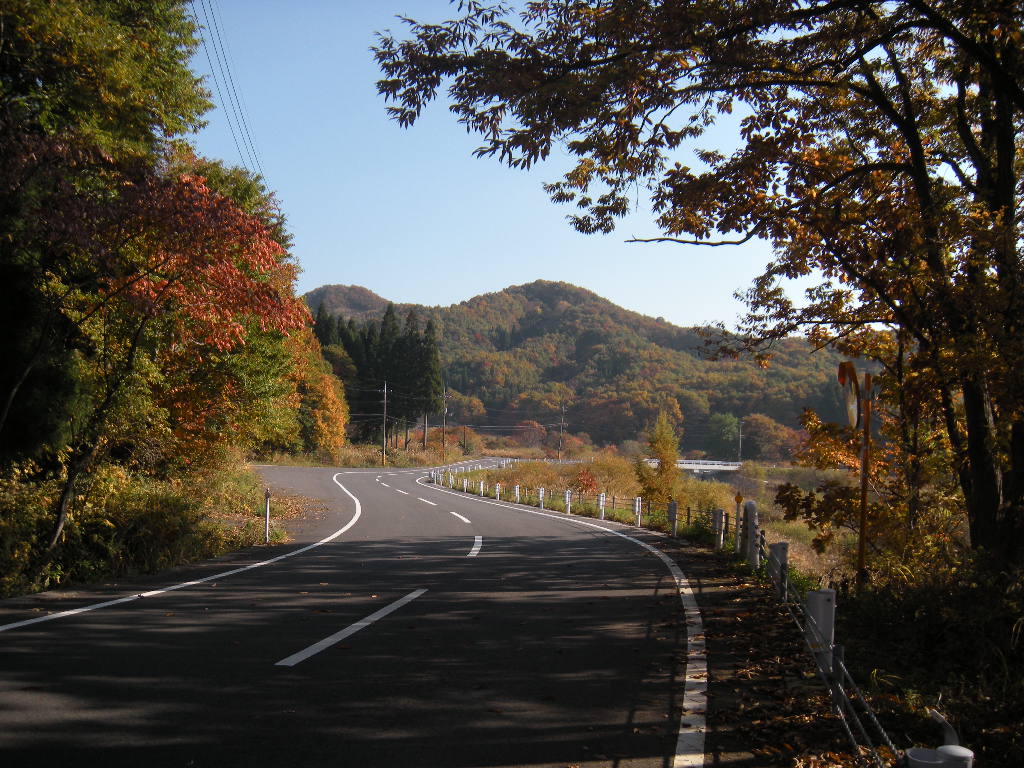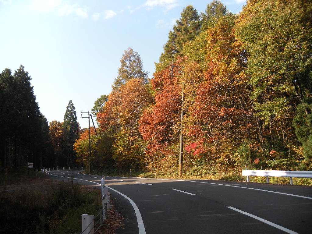 まだ朝で、紅葉見物の人もほとんどいないので道端の広い場所に車を止めて恩原湖周辺を走ってみる。