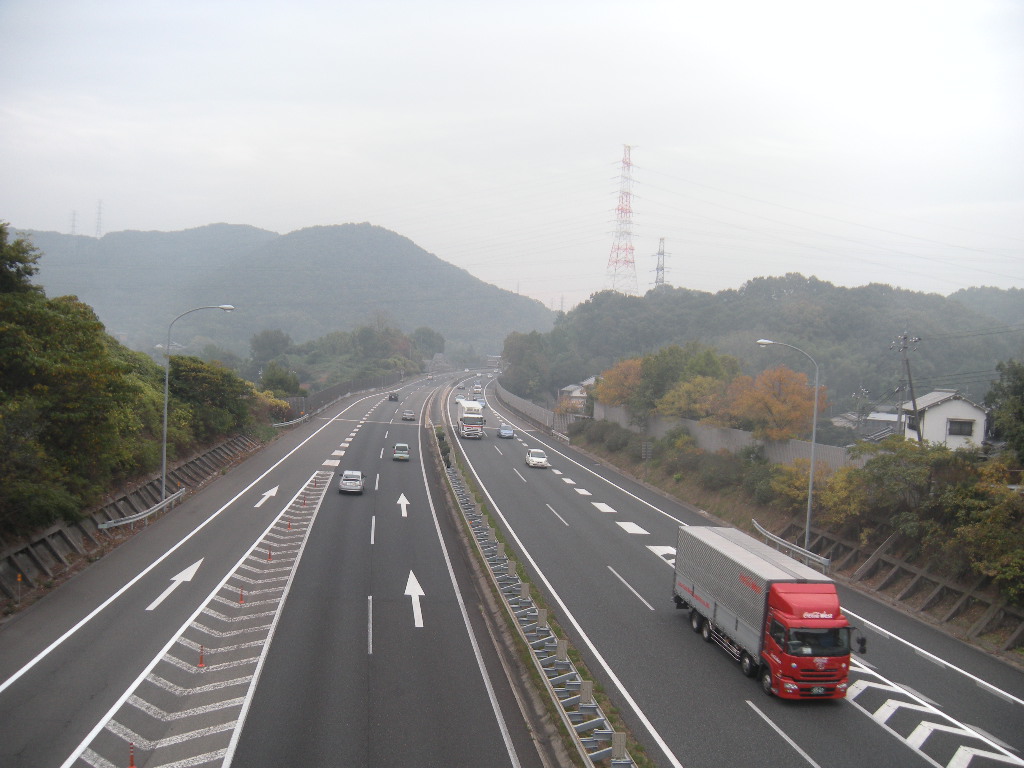 浮田橋から見る山陽道の東、倉敷岡山方向。
