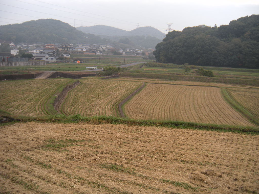 冬を待つだけの小平井立石の田んぼ。向こうは園井。