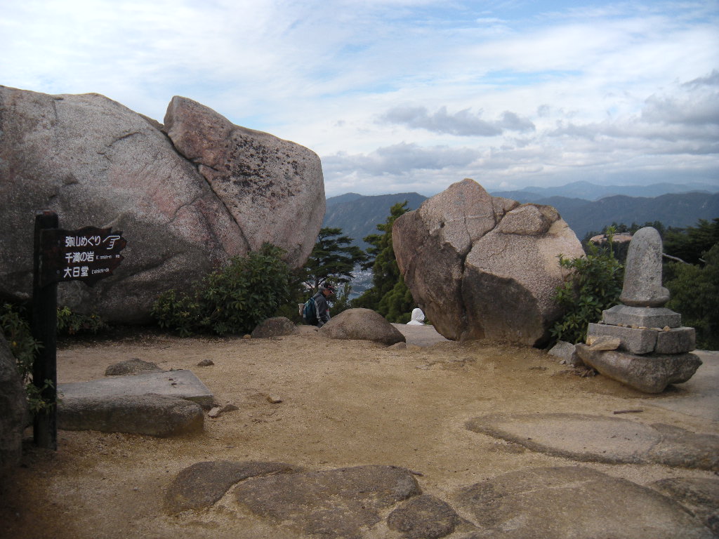 弥山山頂のまわりは信仰と自然の両方の見どころが多い。