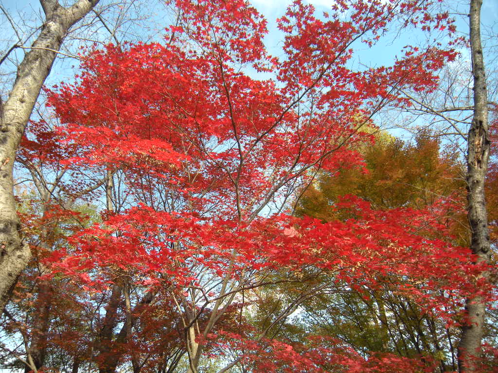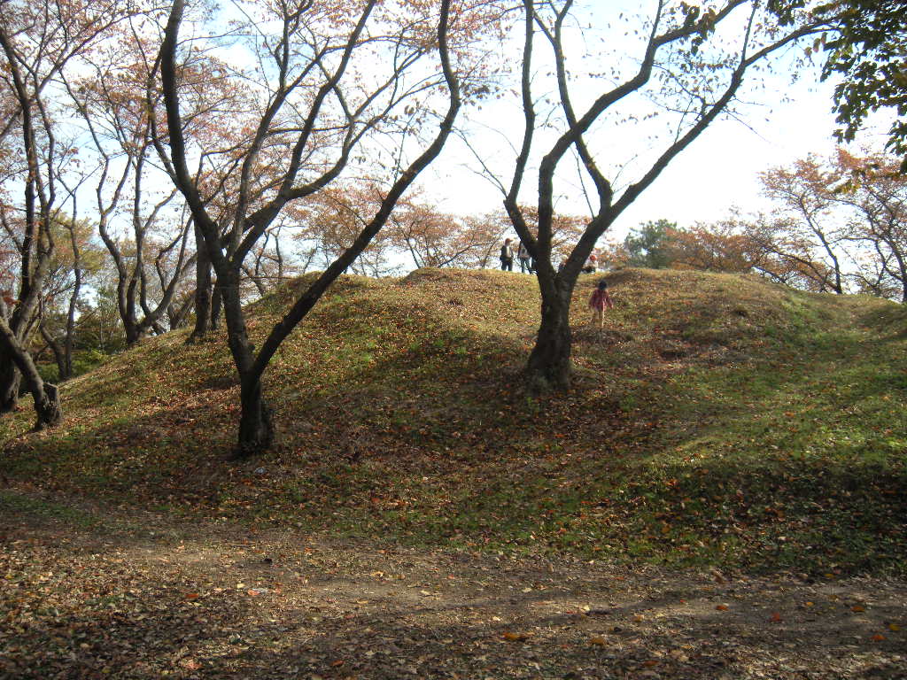 その古墳のまわりに鮮やかなモミジがあった。