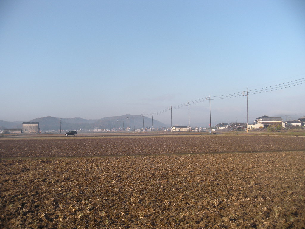 前方のまるい山は甲弩神社。
