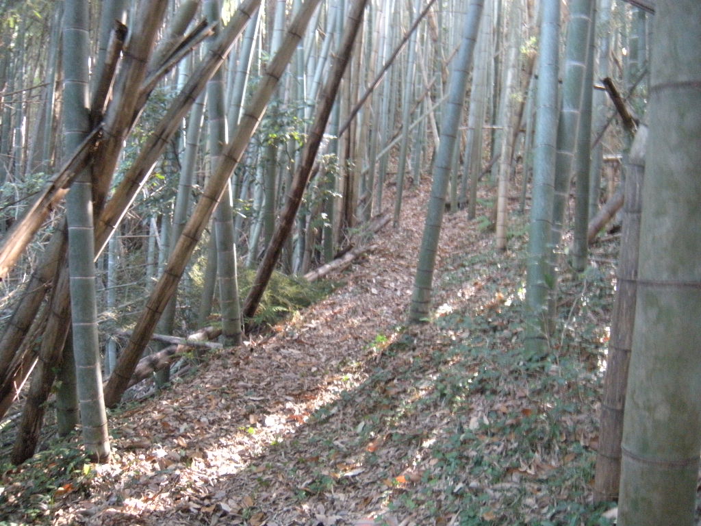 最初は竹藪の中の道。