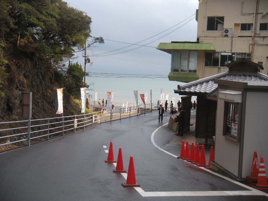 すぐ前は海、大きな土産物屋が一軒と駐車場がある。