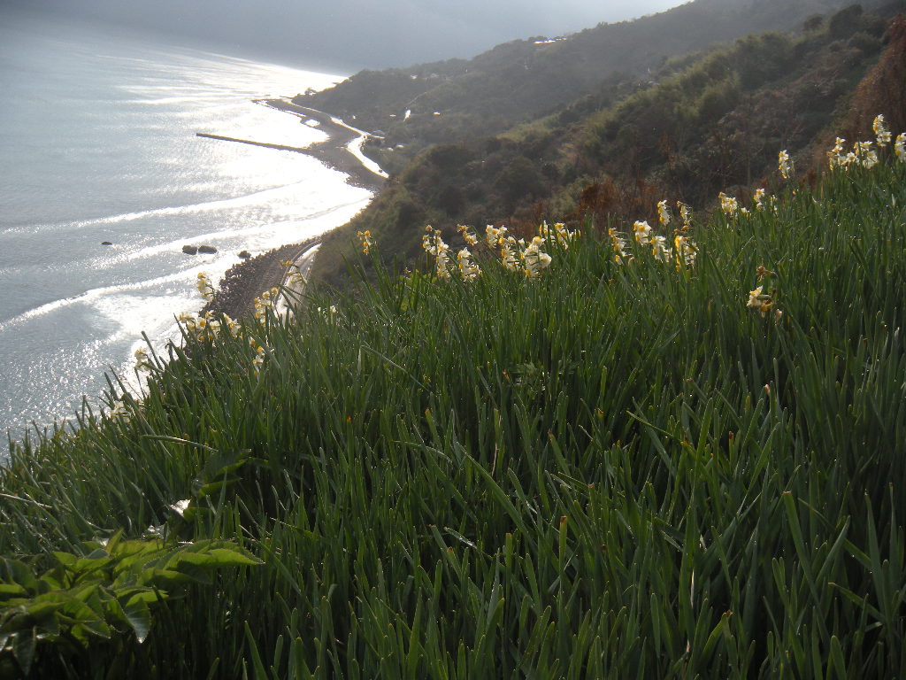 海岸線まで水仙が咲き誇る。直下、いう感じ。