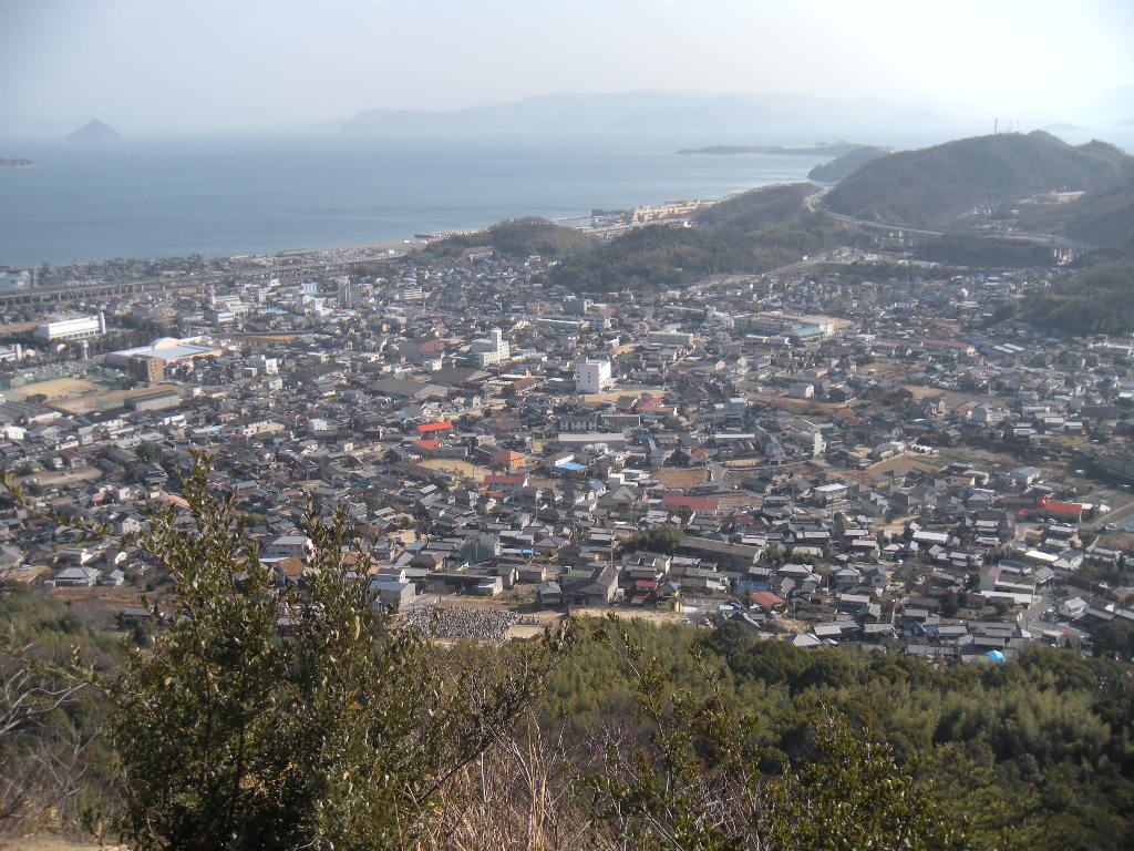 竜王山の三角点から見る児島市街地や王子ヶ岳。