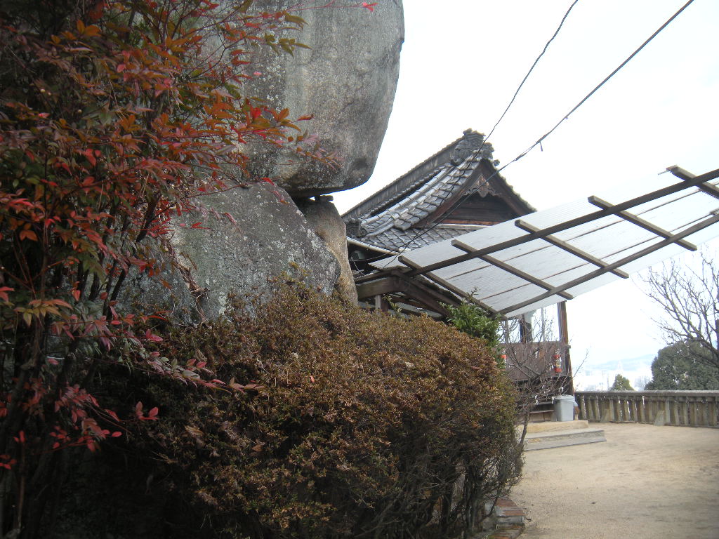 神社に接して岩がごろごろしている。