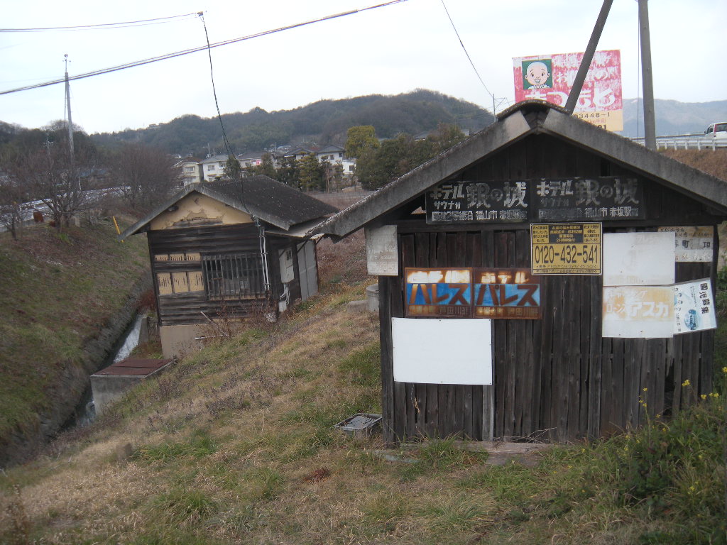 芦田川の堤防道の下には古い小屋が残っている。