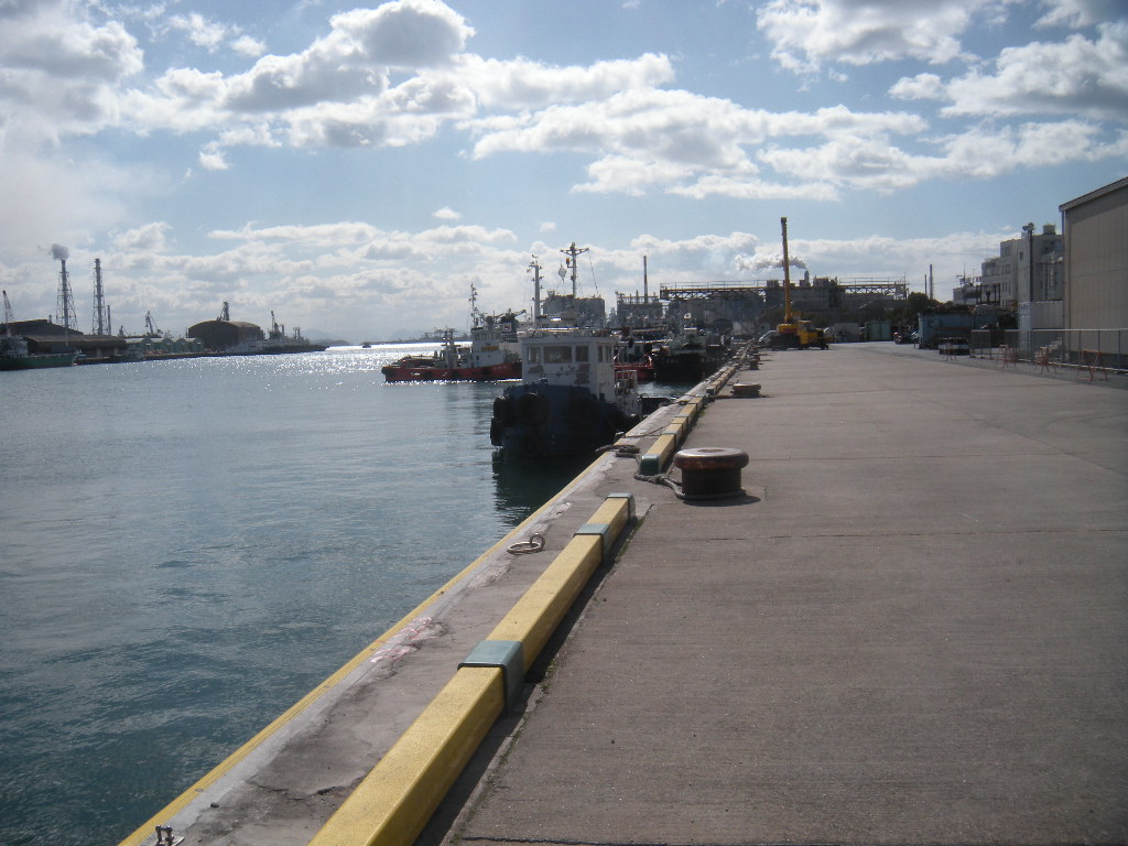 大企業の岸壁が水島港をささえ、公共の水島港はとうの昔に定期番は廃止され静かというよりはさびしい感じ。