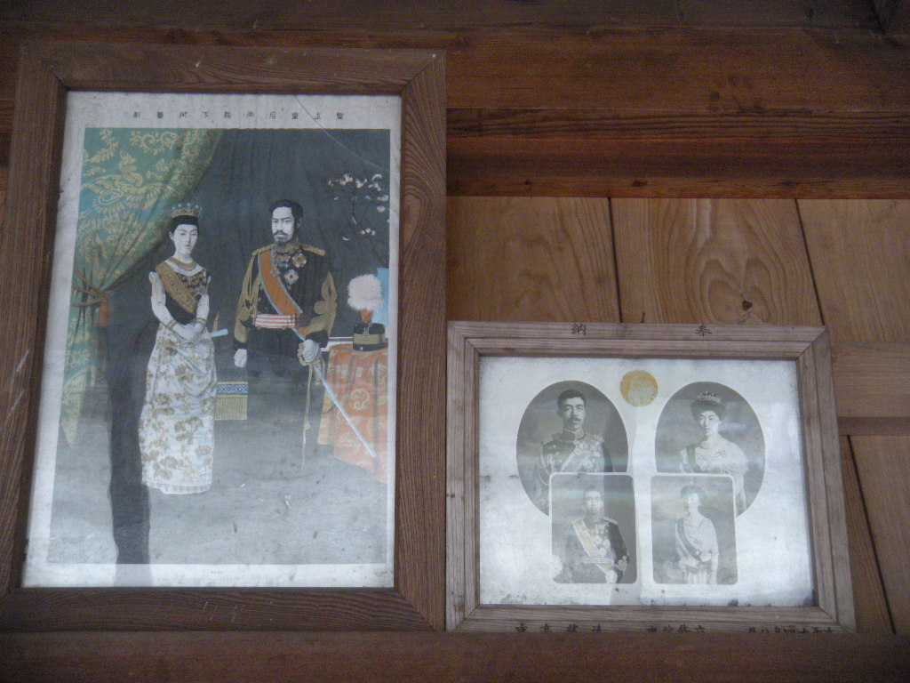 明治天皇・大正天皇・昭和天皇の写真、というよりは「ご真影」と呼ぶのがふさわしそうな写真。