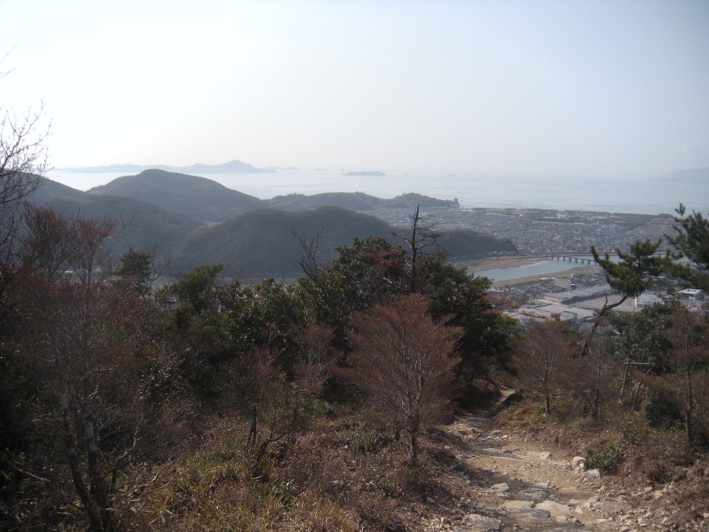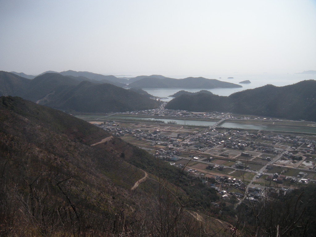 あれが今日の目的地「坂越大道」だ。山からみてもいいけど、現地に着けばもっとええじゃろうなあ。
