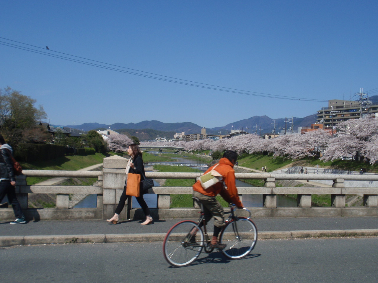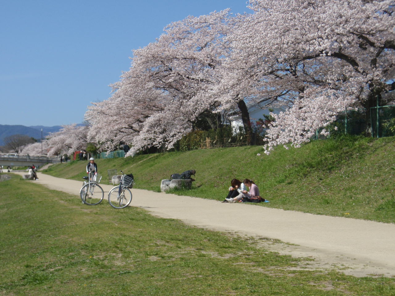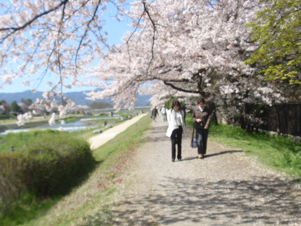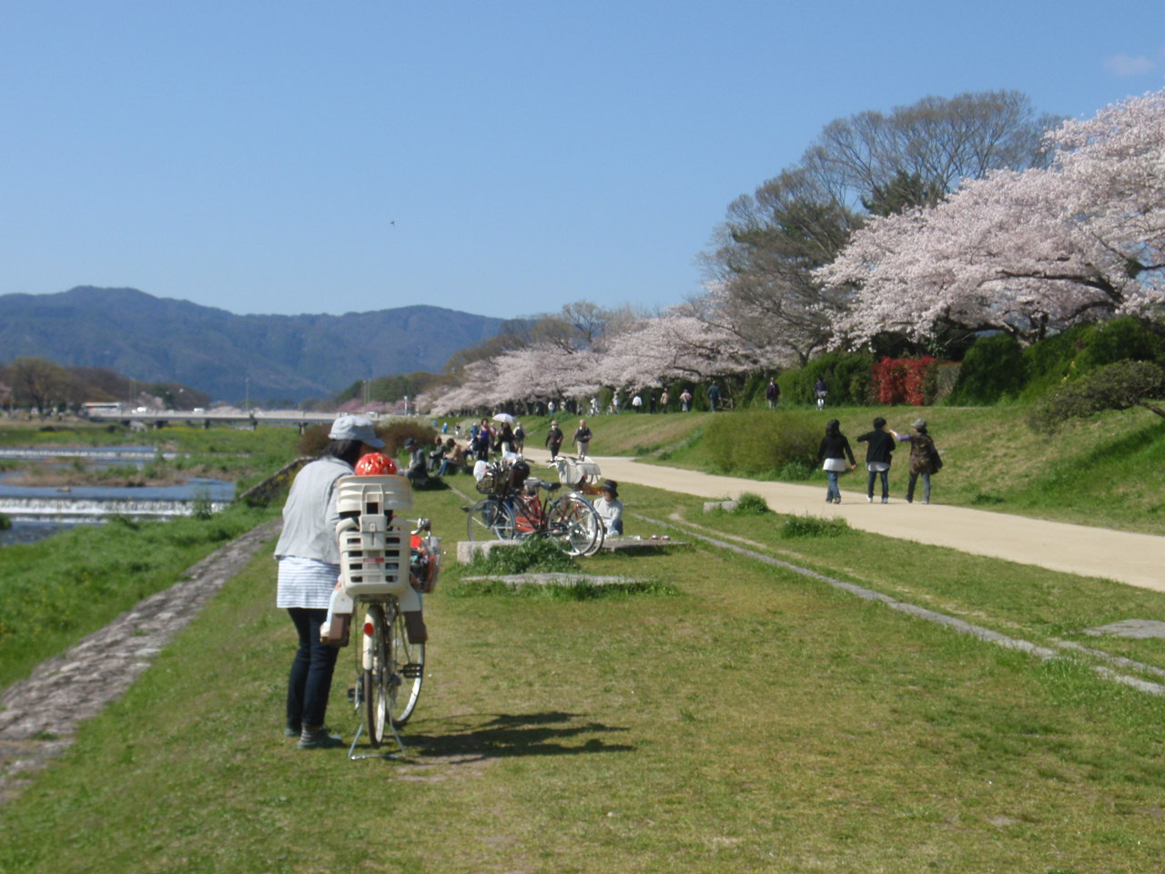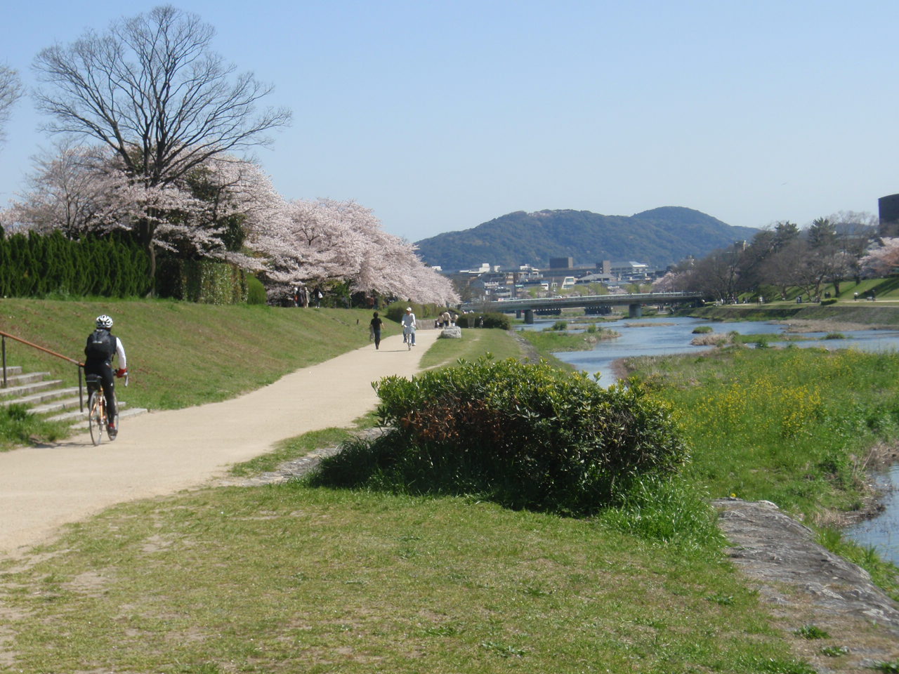 桜は賀茂川の土手も満開。