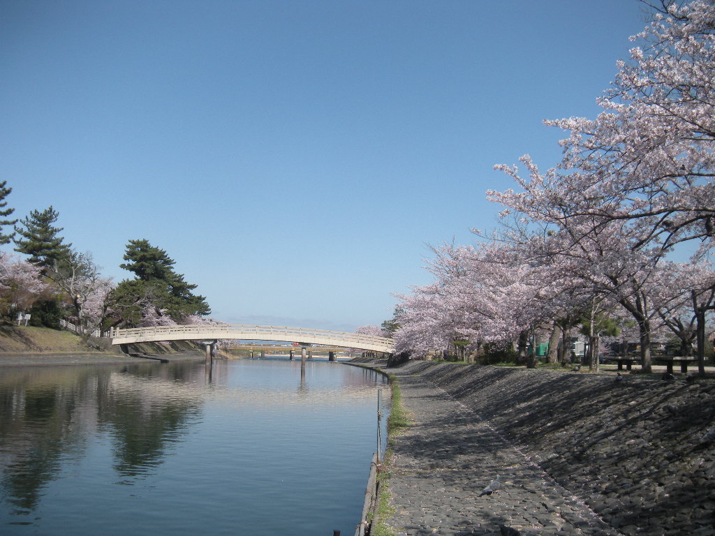 正面の橋が橘橋。中の島のうち橘島に架かる橋。