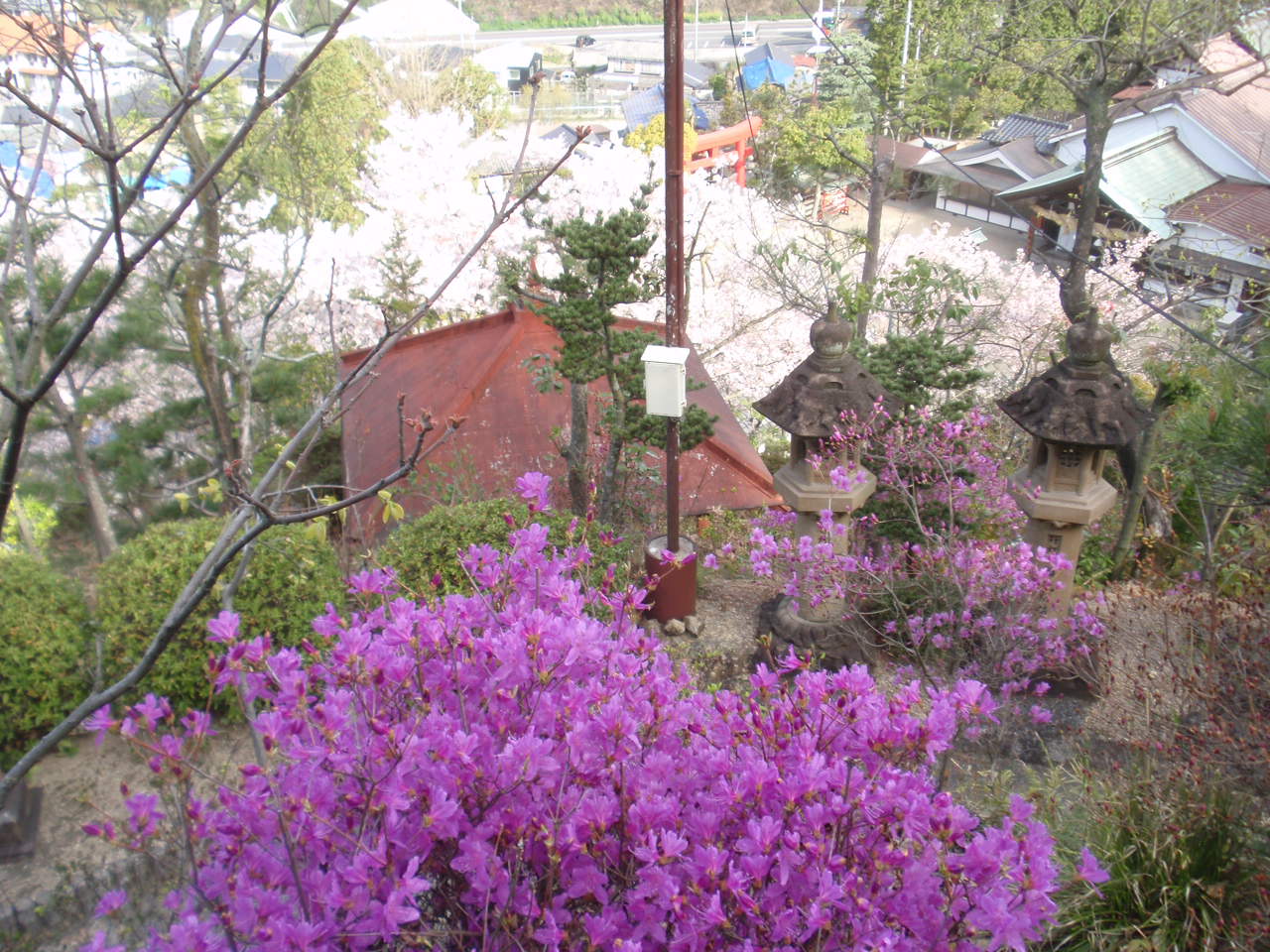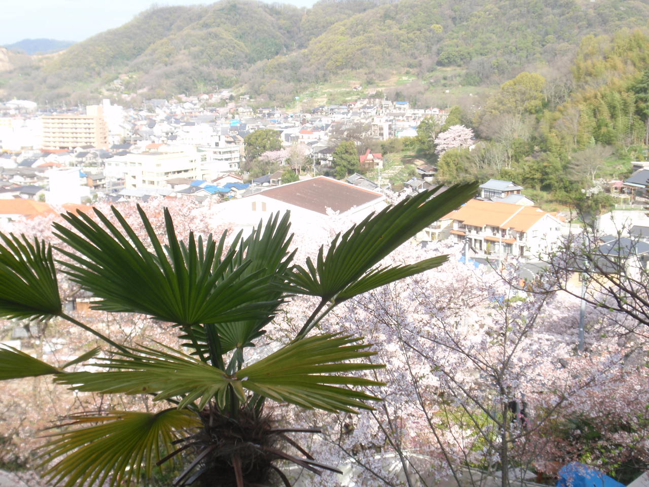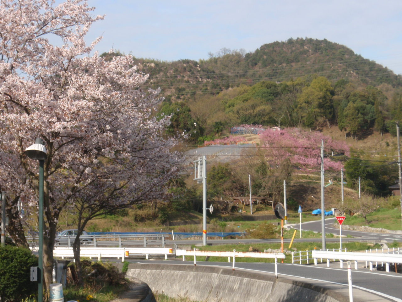 花はまだ散り始めで、桜が山にきれいな古乃美教だった。
