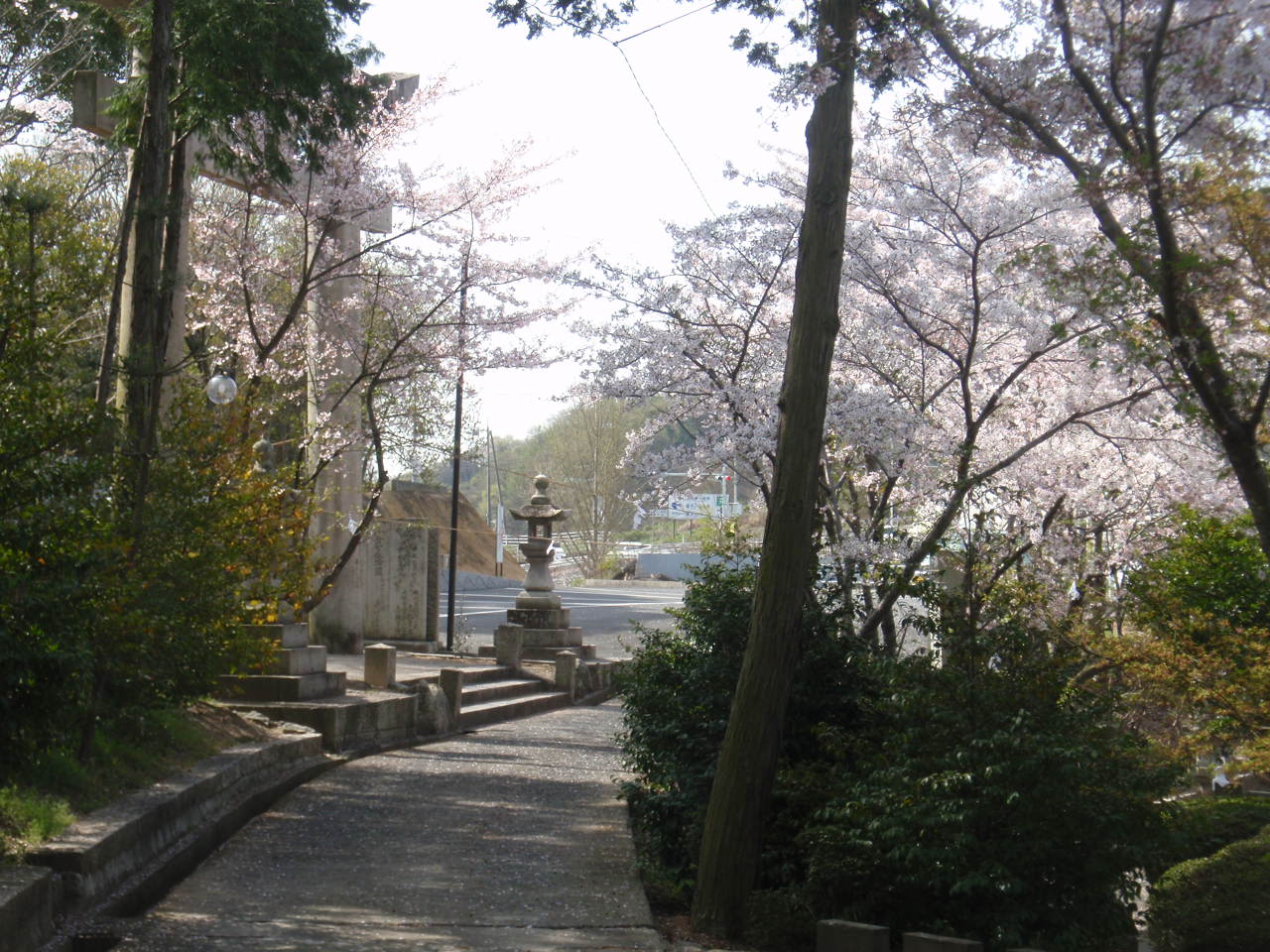 陸路で参拝する人(旧横江小側)の道に咲く桜。