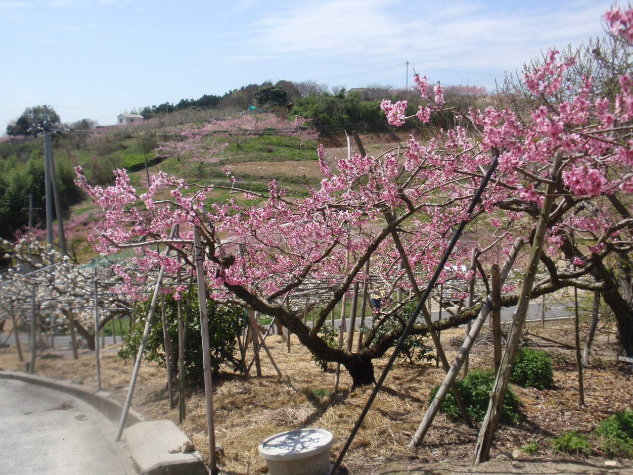 八島富田の桃畑は高速道路や電車の窓から見る景色とはまったく違った。