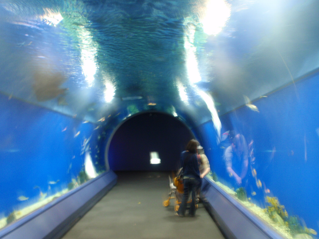 パンフレットに書かれているようにトンネルを歩く。歩道以外は海の世界。