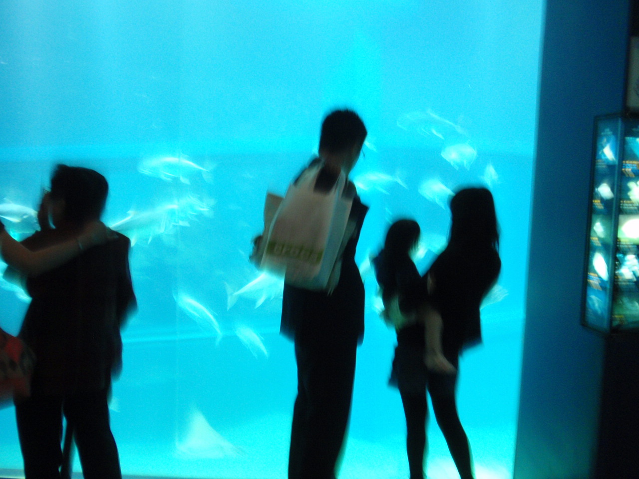 通路は暗く、アクリルガラスの大水槽の中は青い海。