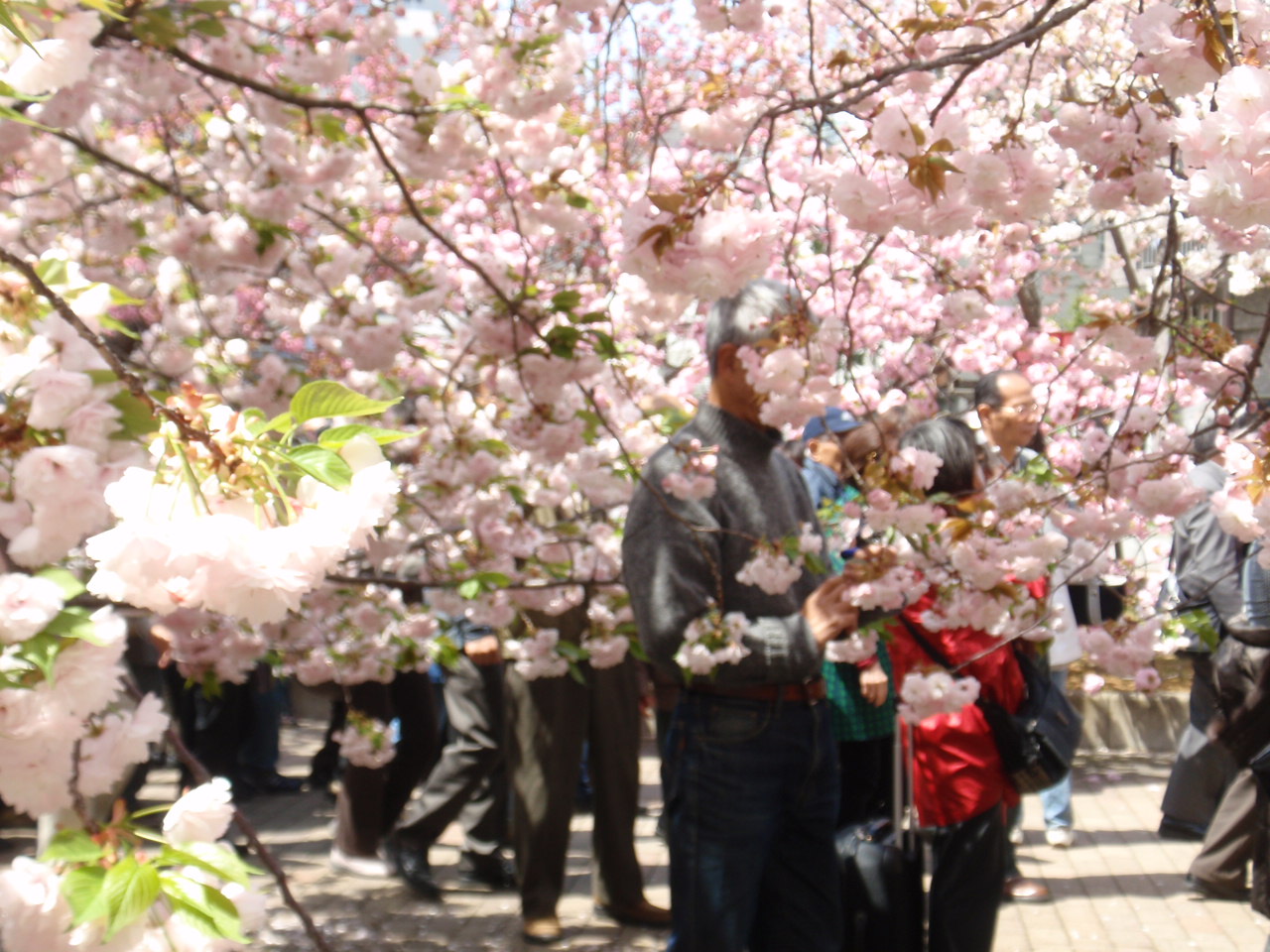 桜の美しさと比べ、シワが目立つ人間がいっしょに写真。