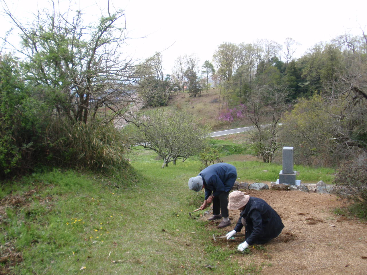 お花を供えたあとで、母は墓地の山道側の草を刈った。