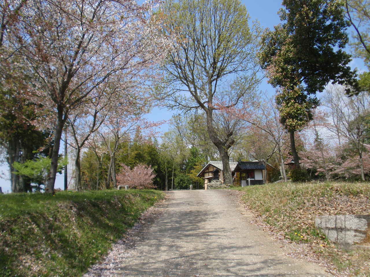 医王院の門前の桜もまだ、花をはんぶん残していた。