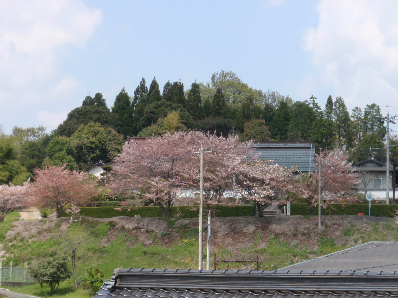 お墓から摩利支天さまを見ると、まだ桜が残っていた。