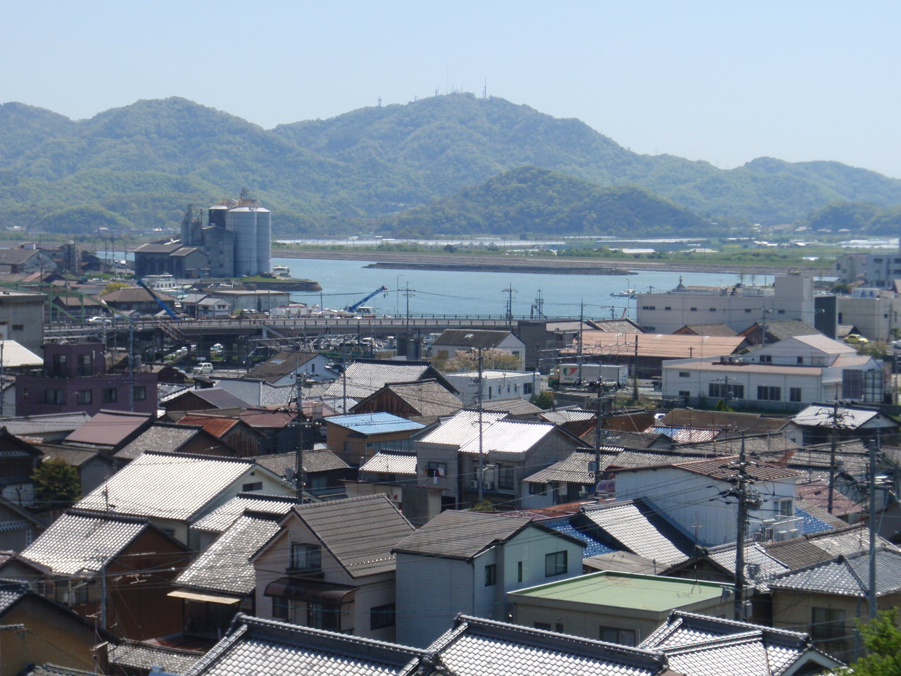 威徳寺の墓地から見るべふぁーむ笠岡。そのむこうに仙酔島、沼隅半島、JFE製鉄所。