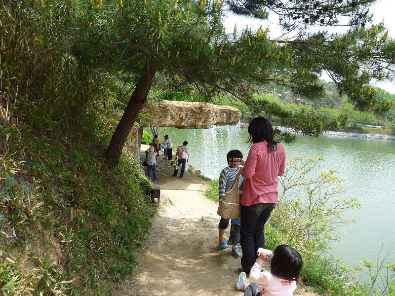 岩から水が落ちるとこには多くの人がいるな、記念写真も撮っている。